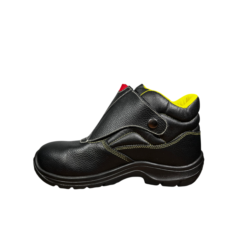 Scarpa antinfortunistica alte in pelle idrorepellente con puntale in composito, antiperforazione e antiscivolo e con patella di protezione durante la saldatura. Scarpa S3S, taglie disponibili dalla 38 alla 48. Perfette per saldatori e carpenteria metallica.