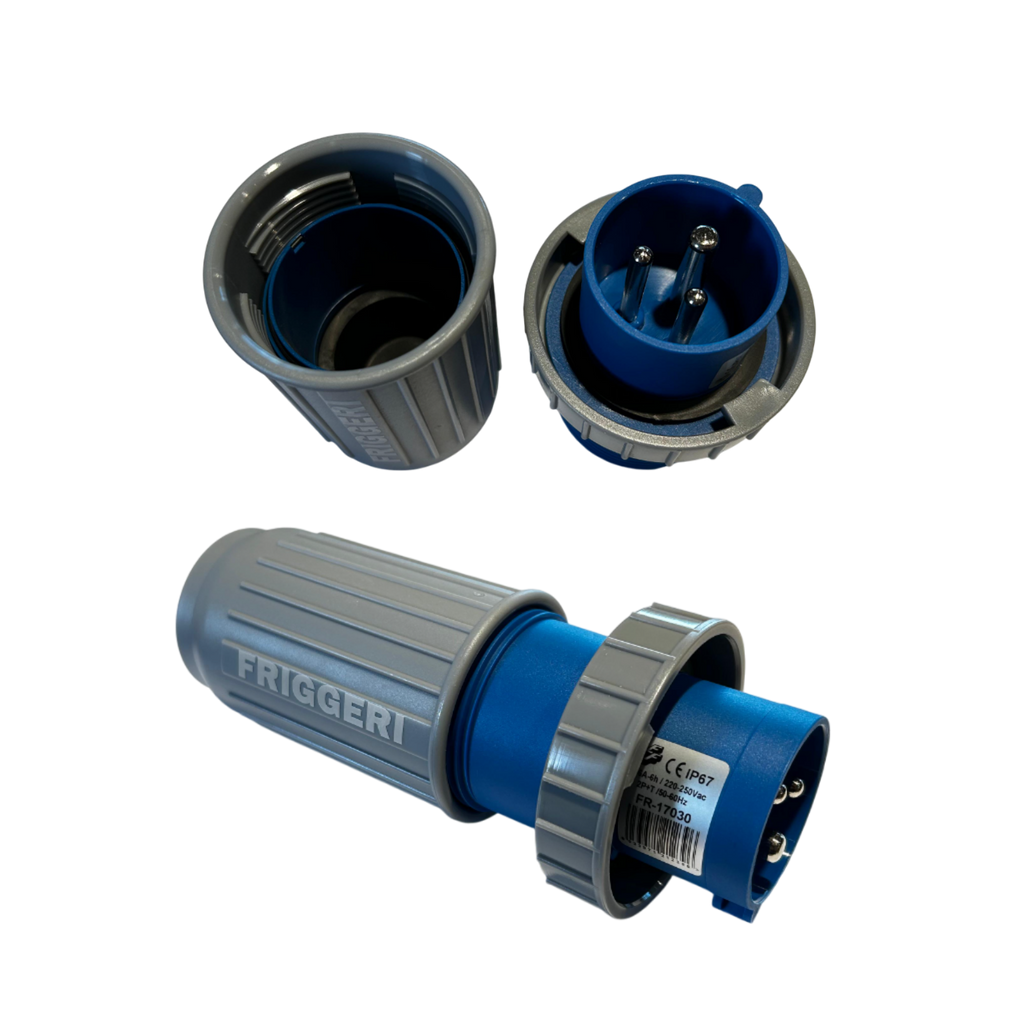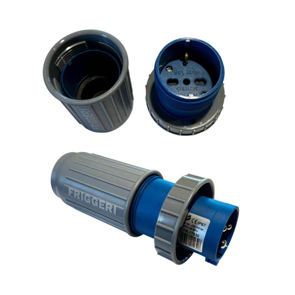 Industrial plug 16A with earth with shirt wiring SCHUKO fixedly and hidden.