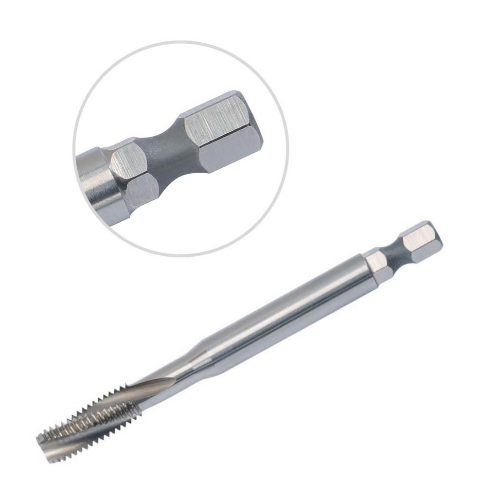 Serie Maschi con attacco esagonale 1/4" per utilizzo su avvitatore. Maschi per fori ciechi in HSS-E DIN 352.