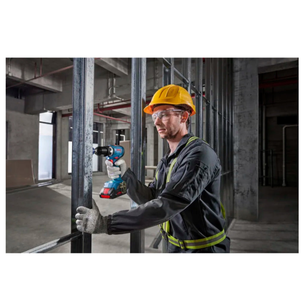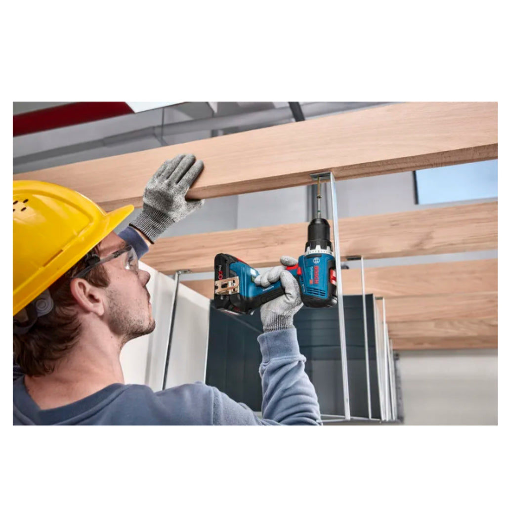 Il trapano avvitatore Bosch GSR 18V-65 è uno strumento professionale da 18 V senza batteria, progettato per installatori, falegnami e carpentieri che richiedono prestazioni affidabili. Dotato di motore brushless, eroga una coppia massima di 63 Nm e velocità regolabili fino a 2100 giri/min, permettendo di forare legno fino a 35 mm, metallo fino a 13 mm e avvitare viti in legno fino a 10 mm. Il mandrino autoserrante da 13 mm facilita il cambio rapido degli accessori. Con lunghezza compatta di 166 mm, si adatta perfettamente a spazi ristretti e interventi di manutenzione. La tecnologia KickBack Control protegge l'operatore dai contraccolpi, mentre le due luci LED integrate garantiscono visibilità ottimale anche in ambienti poco illuminati. Ideale per lavori professionali esigenti.